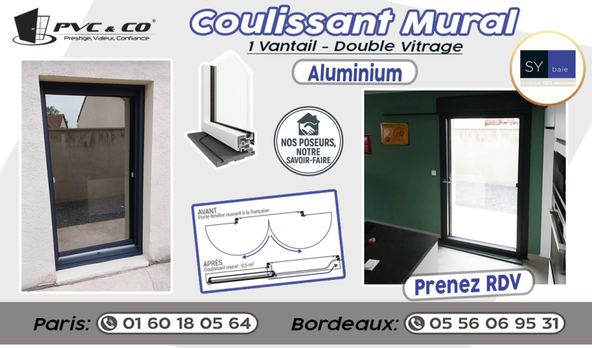 Découvrez notre pose de coulissant mural – 1 vantail en double vitrage de la marque Sy Baie 🪟