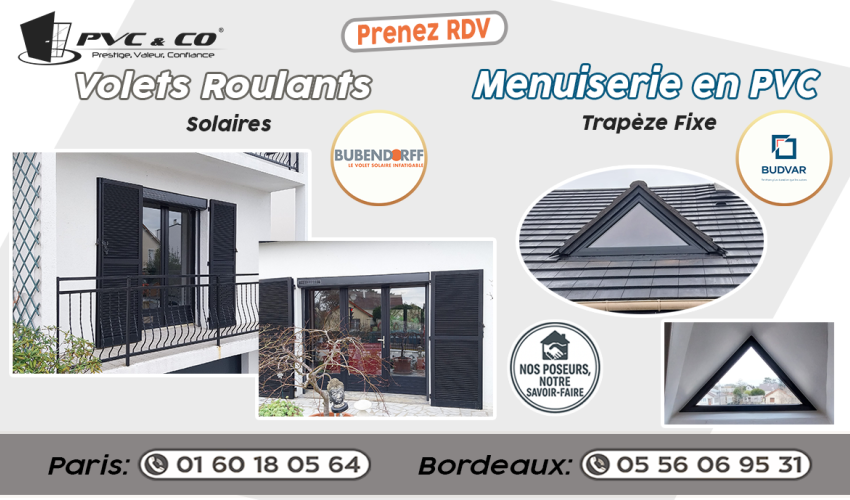 Pose de volets roulants solaires Bubendorff et d’une fenêtre PVC Budvar (trapèze fixe), réalisée par nos équipes à Le Plessis-Trévise.