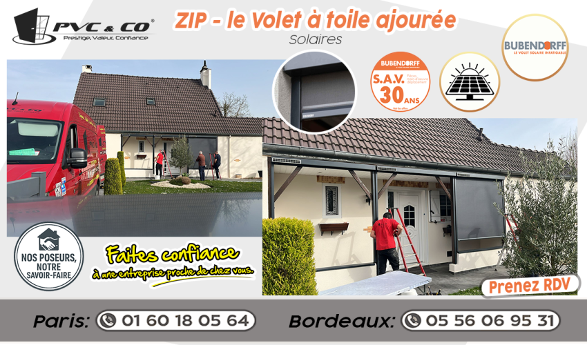 Zoom sur nos volets Zip Bubendorff solaires à toile ajourée : lumière maîtrisée, confort assuré… et zéro raccordement électrique ! ☀️🔋